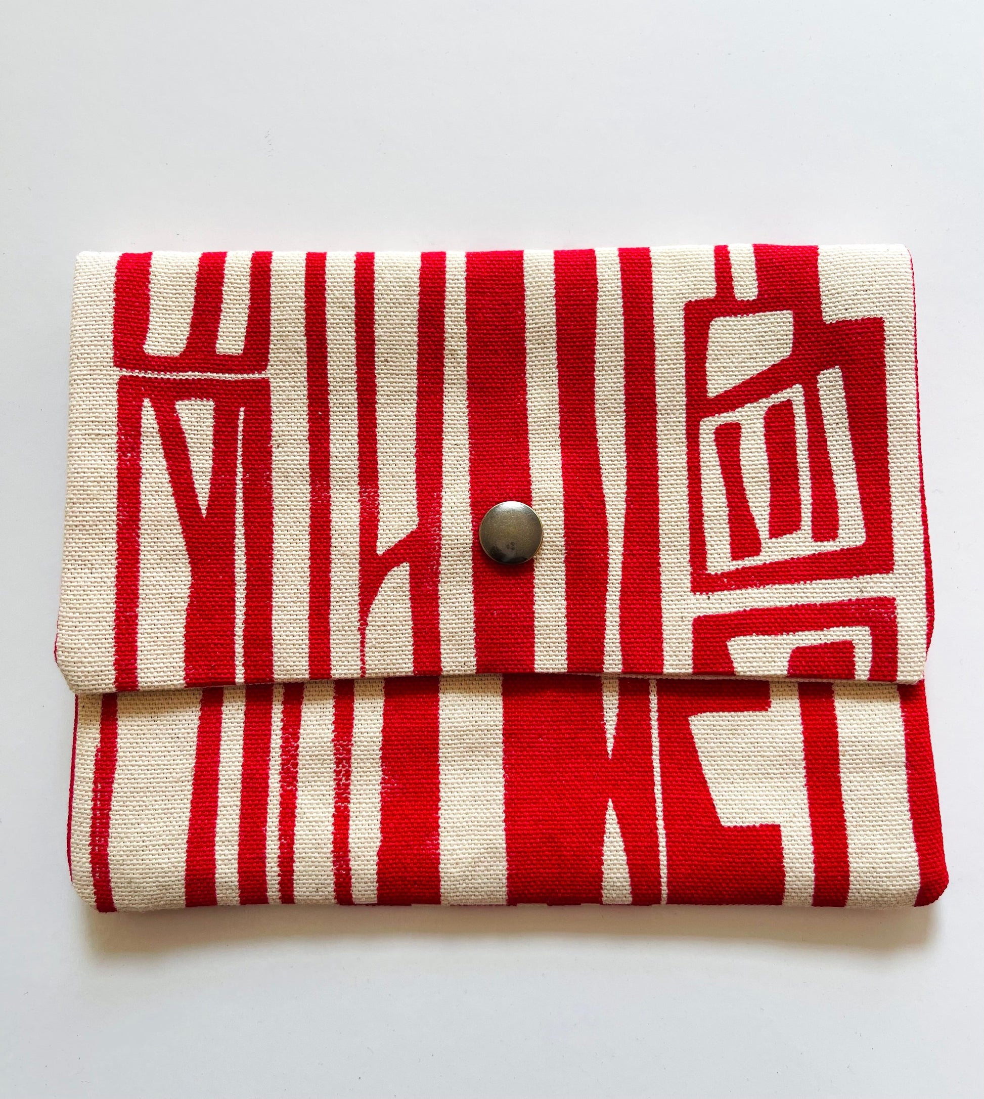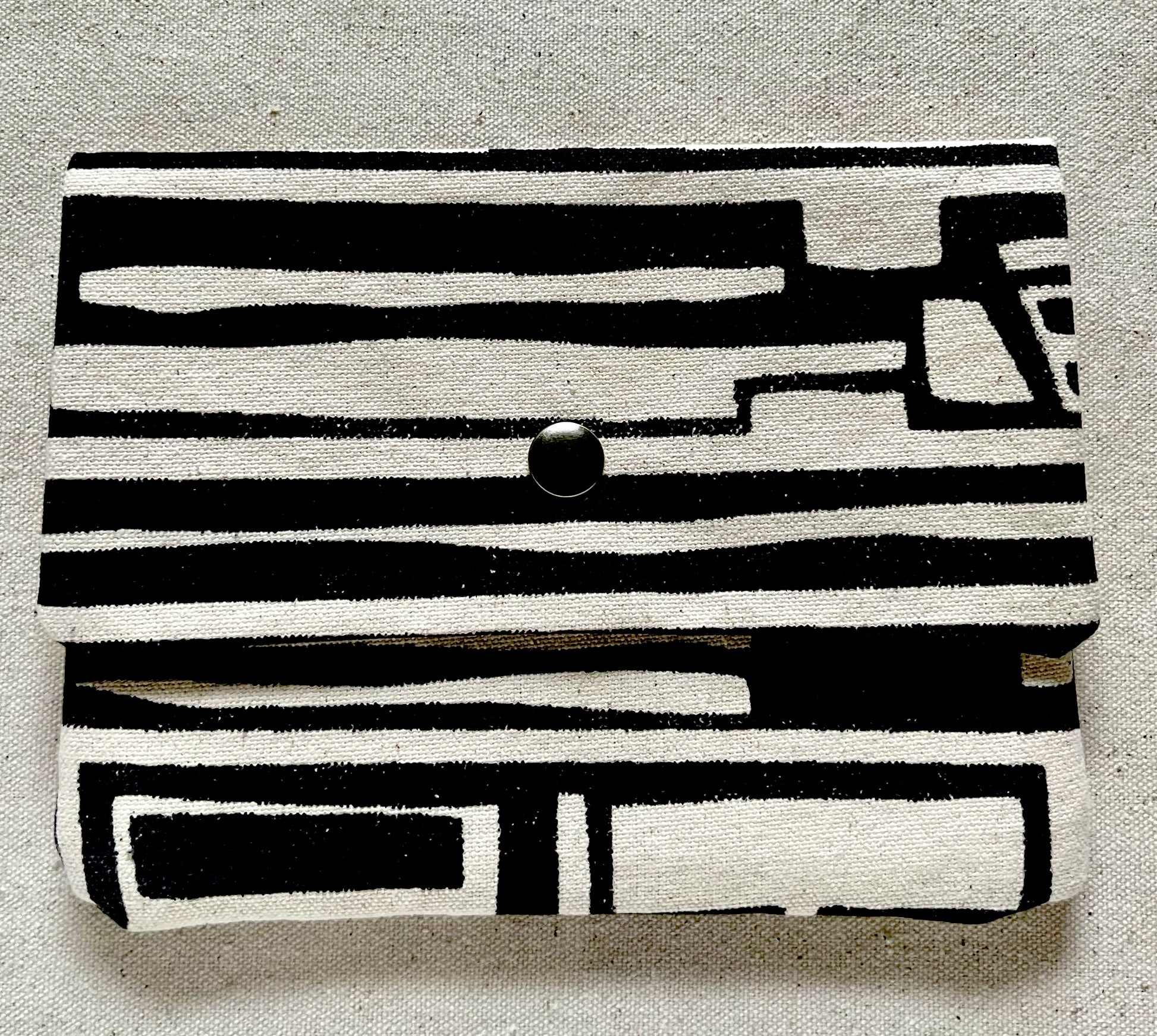 These one-of-a-kind pouches are made from the hand-printed canvas that remains after making my bins and bags. I strive to find creative uses for fabric cut-offs, which helps to prevent or reduce fabric waste.